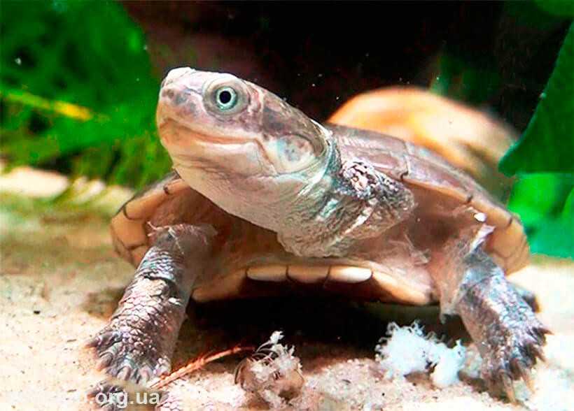 Этот вид черепах — облигатный плотоядный и должен получать разнообразный рацион животного происхождения.