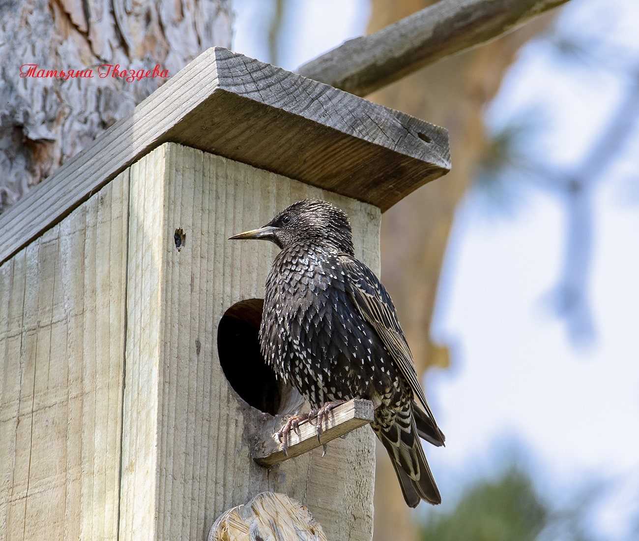 Скворец не может долбить дерево, как дятел, поэтому охотно занимает предложенные человеком деревянные скворечники, часто выселяя из них воробьев.