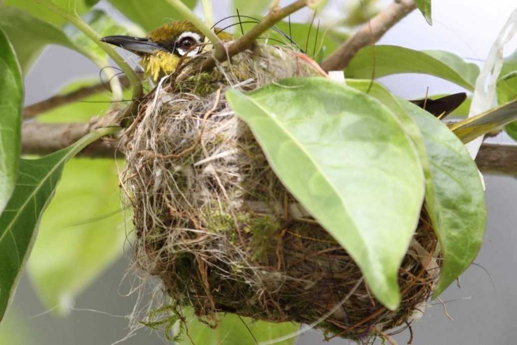 Пары особей, как правило, моногамные, выбирают место для гнезда на высоте от 1 до 30 метров над уровнем земли. Строительство гнезда длится в среднем 7–10 дней, может использоваться различный материал для гнезд (живой и неживой); паутина, мох, лишайники, и шерсть млекопитающих — все это примеры строительной среды, которую используют птицы. Строя гнезда, часто воруют материал из гнезд других птиц. Гнезда, как правило, имеют чашевидную форму, диаметром 56,2 мм и глубиной 41,7 мм. Большинство гнезд используются только один раз, но некоторые могут использоваться до трех раз в любое время года.