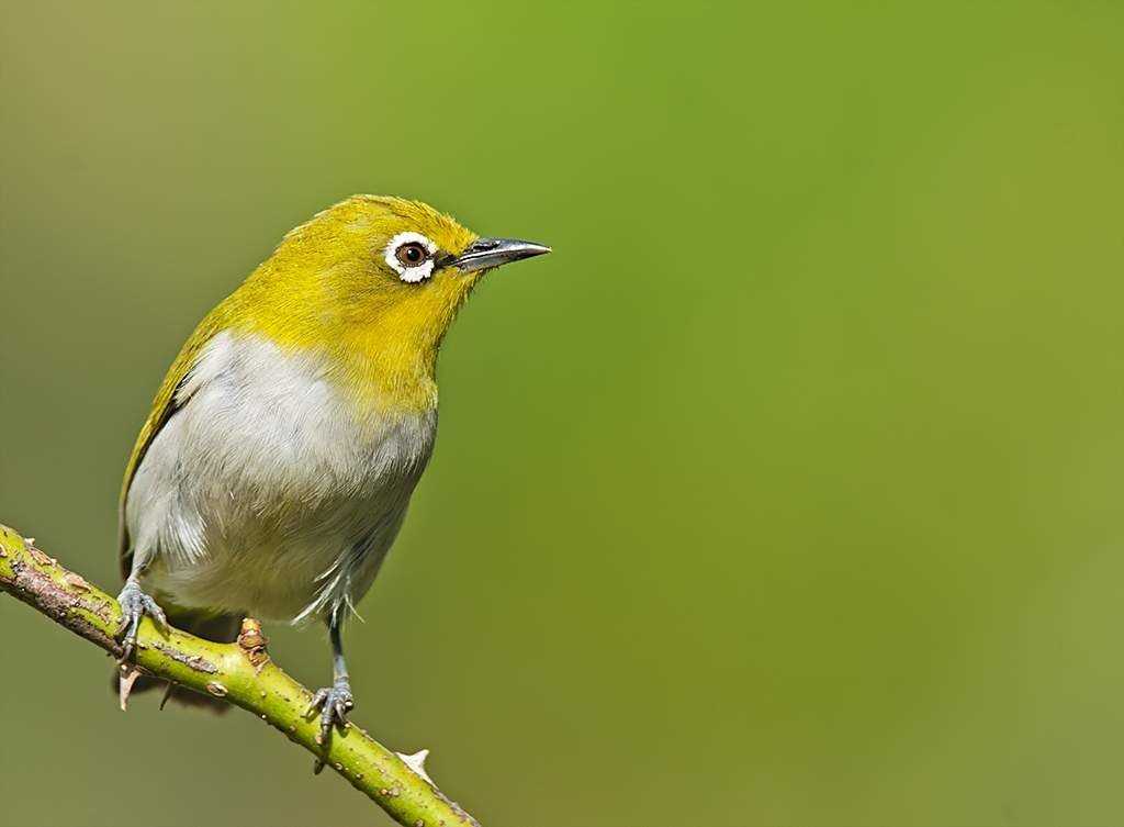 Восточную белоглазку можно обнаружить по звучному посвисту, напоминающему крик чижа. Сами же птицы в густой листве совершенно незаметны, и надо очень внимательно всматриваться, чтобы разглядеть в кроне деревьев мелких рыжеватых, с зелеными спинками и боками птиц.