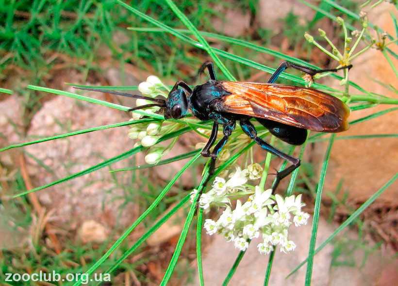 Оплодотворенные самки в сумерках летают низко над землей, разыскивая пауков-птицеедов из семейства Theraphosidae. На юге США явное предпочтение отдается техасским коричневым тарантулам (Aphonopelma hentzi).