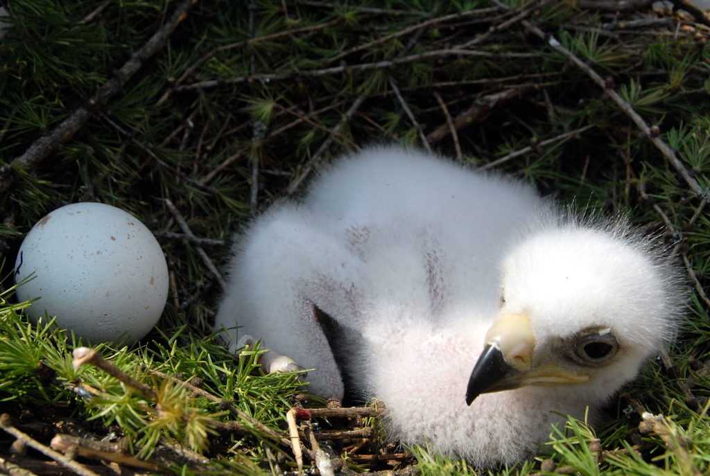 Яйцо и пуховой птенец беркута. Фото: commons.wikimedia.org / Johann Jaritz.
