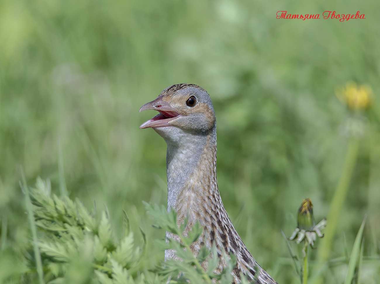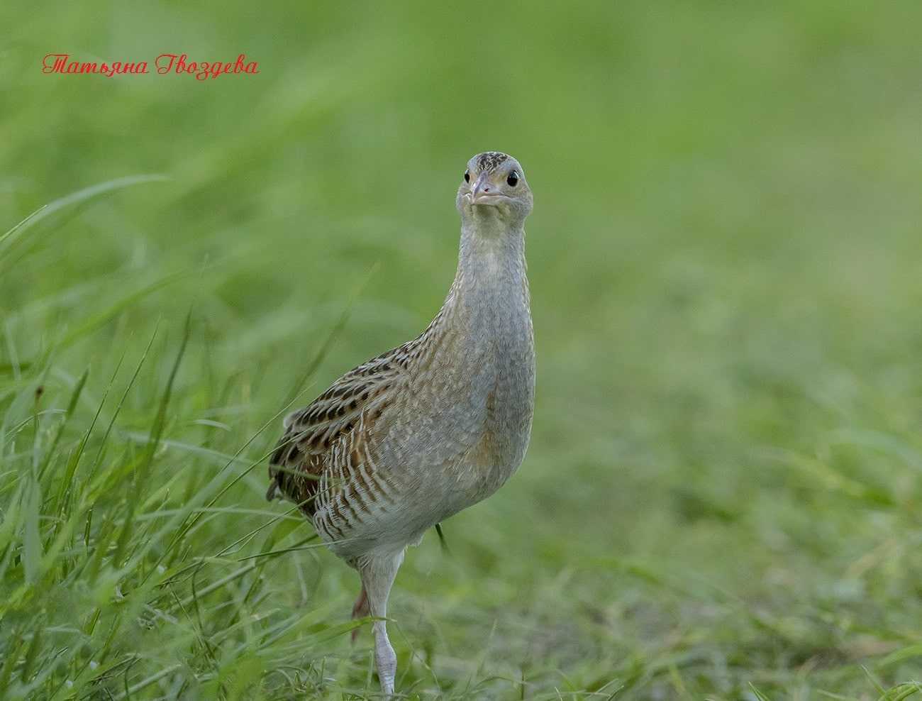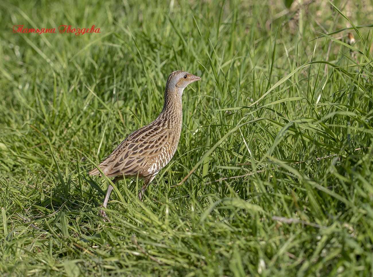 У коростеля маленькая округлая голова, темные, карие глаза. Окраска тела рыжевато-охристая с тёмными пестринами. Спинка черно-бурого цвета с оливково-серыми пятнышками (окрас спинки чем-то напоминает рыбью чешую). Брюшко беловато-кремовое с желтоватым оттенком, крылья буровато-рыжие, в мелких светло-желтых пятнах. Бока головы, шея и грудь у самца пепельно-серые (вне сезона размножения серый цвет на голове, шее и груди самца исчезает).