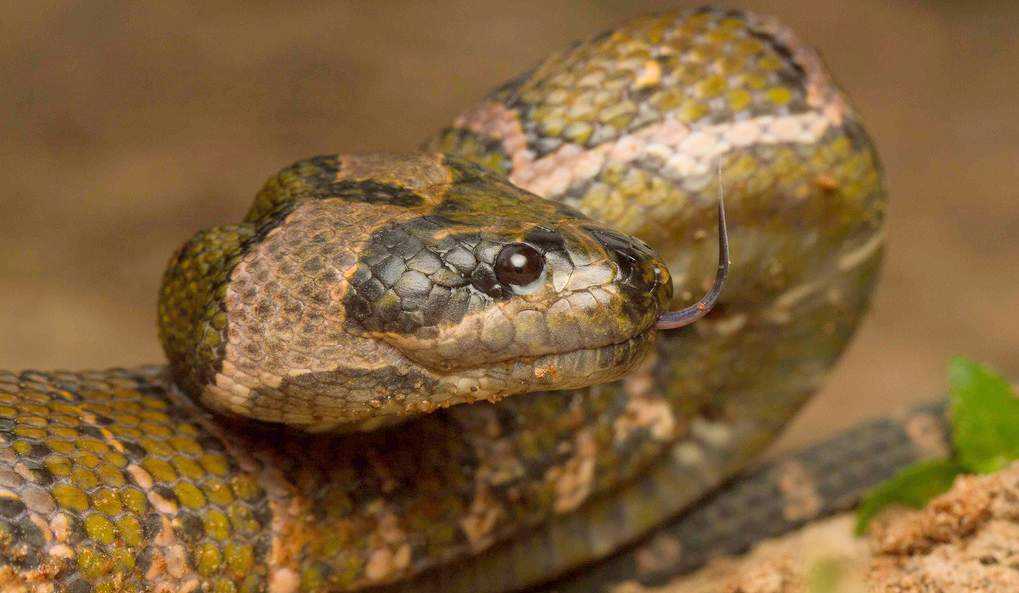 Серпентолог поймет, что перед ним аметистовый питон по своеобразной окраске чешуек: