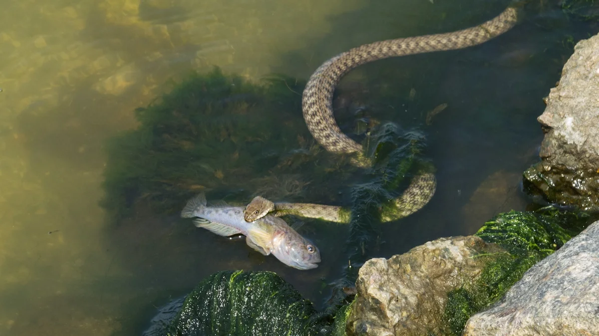 Мелкую рыбу ужи глотают на месте, а крупную тащат на берег — для проглатывания больших объектов им нужна твёрдая почва под брюхом
