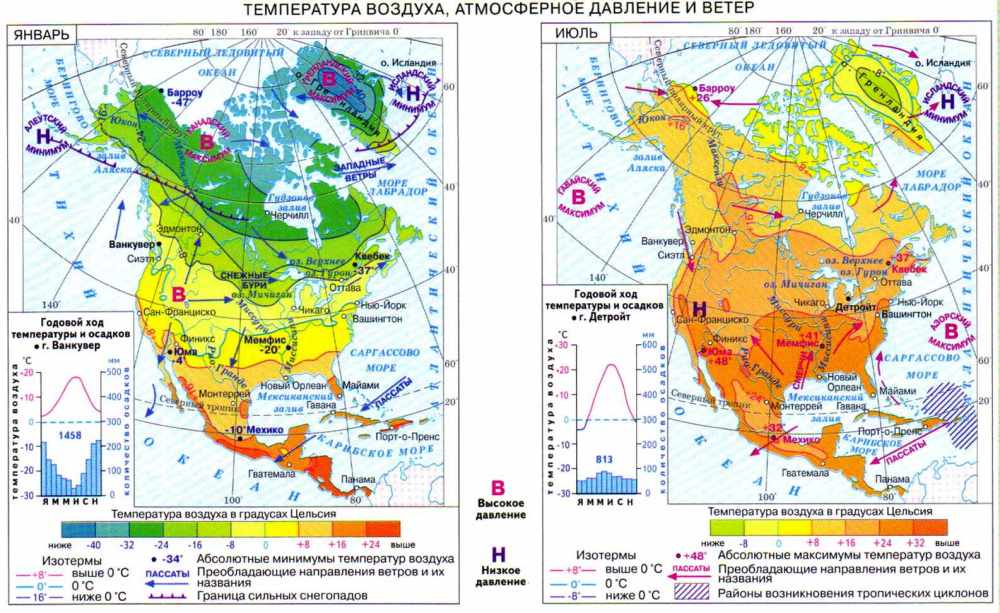 Территорию Северной Америки с запада омывает Тихий океан с Беринговым морем, заливы Аляска и Калифорнийский, а с востока – Атлантический океан с морями Карибским и Лабрадор, заливы Святого Лаврентия и Мексиканский. С севера материк омывается водами Северного Ледовитого океана с морями Баффина и Бофорта, а также Гудзоновым и Гренландским заливом.