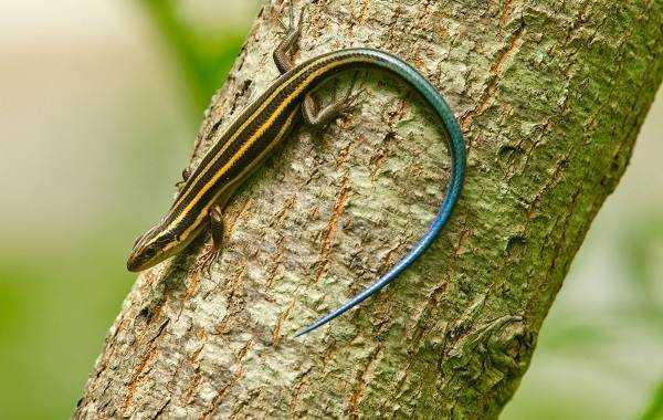Дальневосточный сцинк, житель Курильских и Японских островов. Оливково-серого цвета с синевато-перламутровым длинным хвостом. Включен в Красную книгу России.