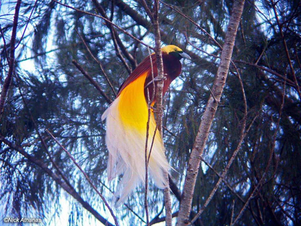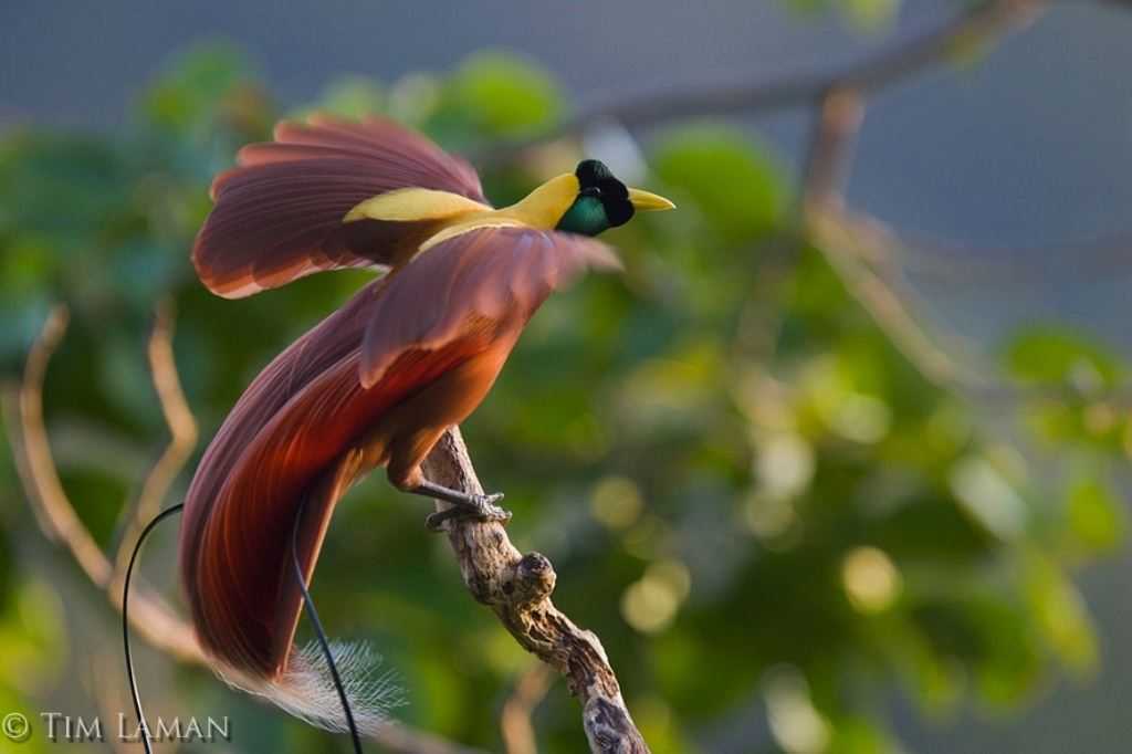 Raggiana Bird of Paradise — Paradisaea raggiana Встретить этих птиц можно лишь в чащах высокогорных лесов, где для них полно пропитания: фруктов, насекомых, ящериц, древесных лягушек и т.д.