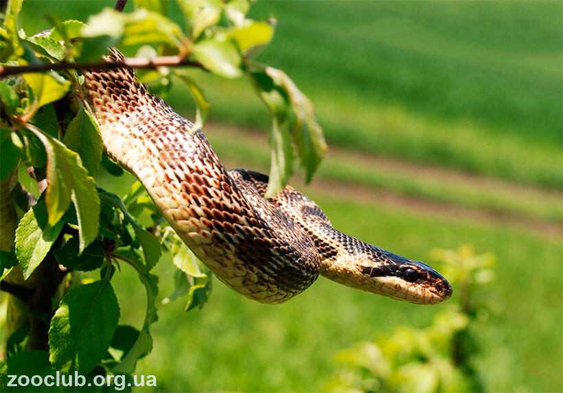 В поисках птичьих яиц Палласов полоз может взбираться на самую верхушку высоких деревьев.