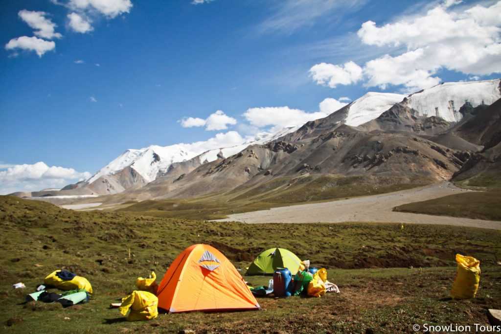 Кемпинг на коре вокруг священной горы Амнье Мачен в Амдо / провинция Цинхай на карте КНР