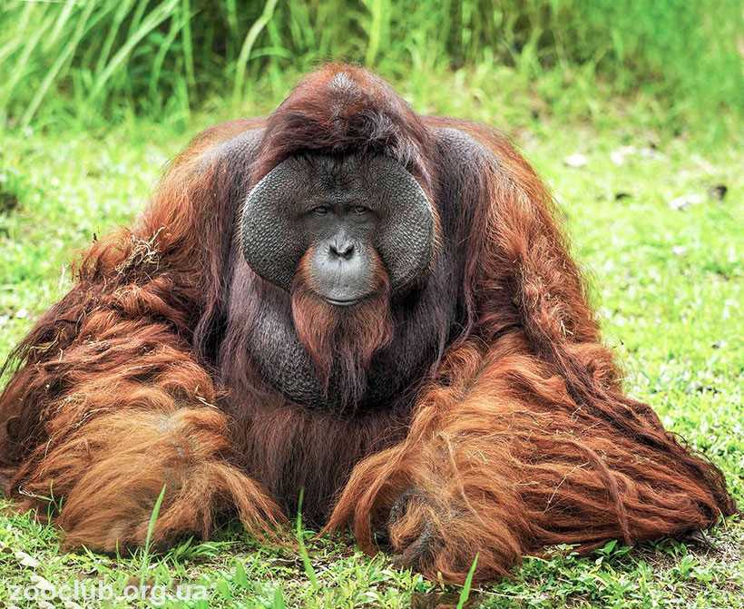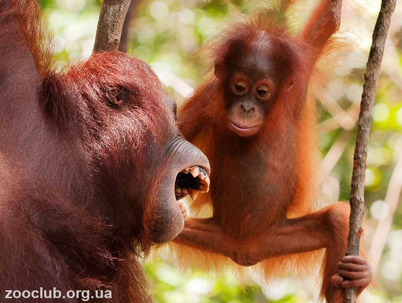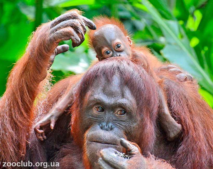 Пищу борнейские орангутаны ощипывают пальцами и ладонью из-за невозможности использовать большие пальцы.