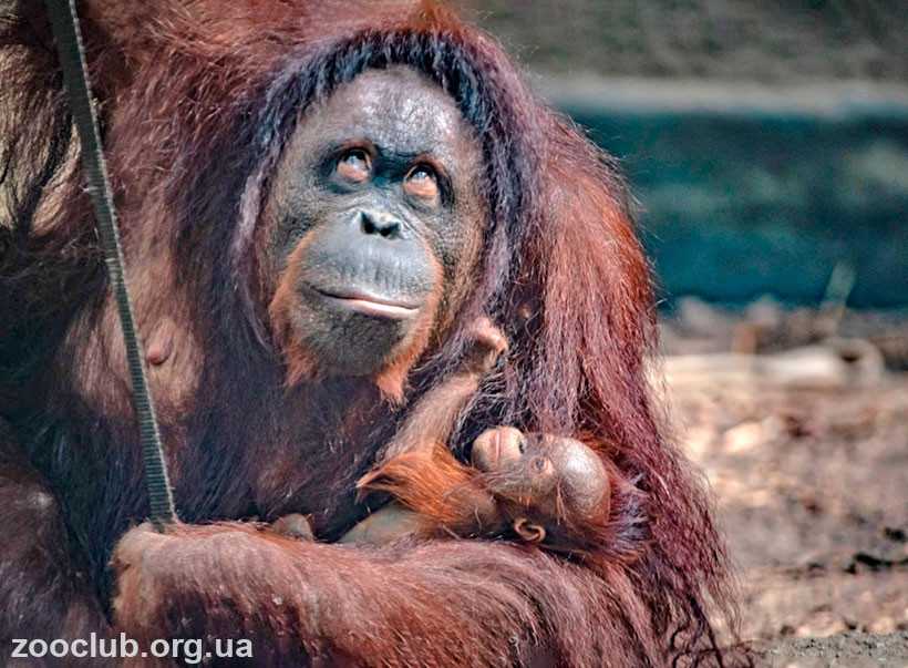Обычно самки борнейских орангутанов размножаются один раз в 6-8 лет. Молочное кормление длится 5-6 лет. Детеныш остается с матерью до появления на свет следующего потомства.