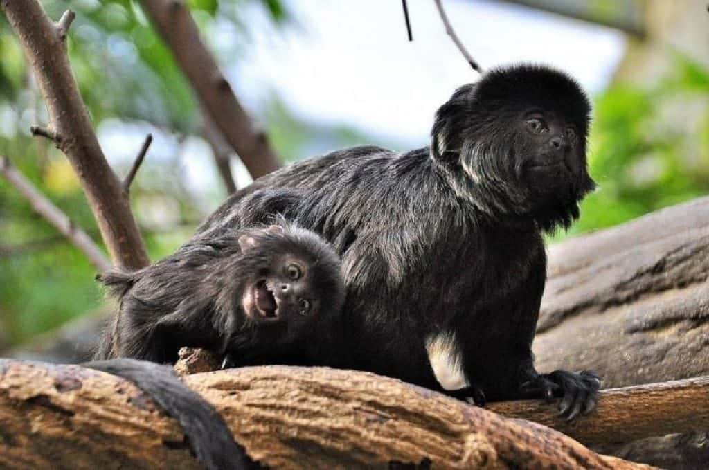 Следующая самая маленькая обезьянка в мире – мармозетка Гёльди, или по другому названию, гельдиевая каллимико из семейства Игрунковые. Эту ближайшую родственницу карликовой игрунки даже называют «карманной», ведь данное определение как нельзя точно описывает ее скромные размеры. Мармозетка, достигающая всего 22 см в длину и 100-300 г веса, действительно может удобно устроиться в кармане одежды! Оттуда будет торчать разве что ее хвост, который вырастает до 25-30 см.