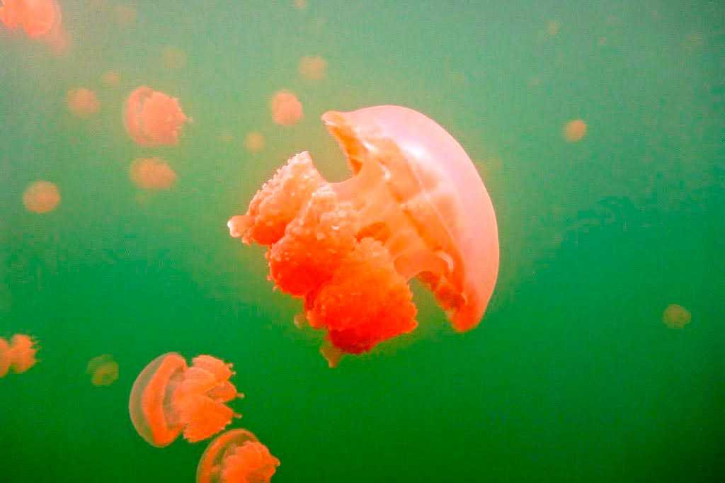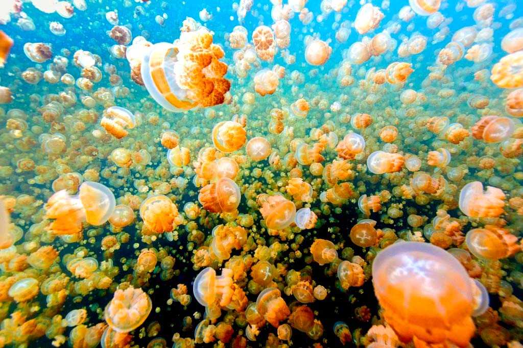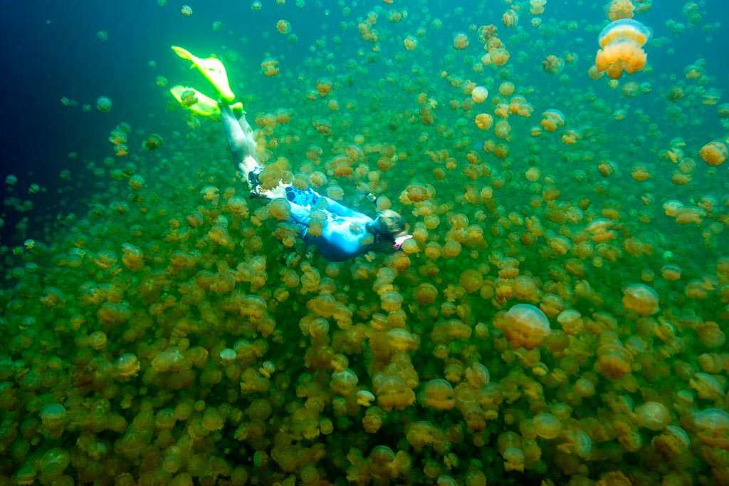 Озеро Медуз на Палау — единственное место в мире, где туристы могут спокойно плавать в окружении большого скопления медуз и не бояться за собственное здоровье. Это стало возможным потому, что здешние медузы долгое время жили в автономной среде, и их биология сильно изменилась.