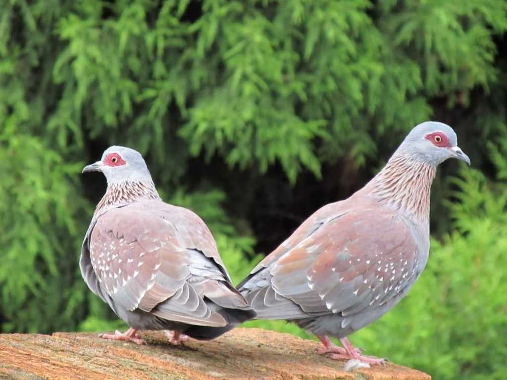Молодые крапчатые голуби в большей степени окрашены в бурые тона, чем у взрослые птицы, у них отсутствует красная кожа вокруг глаз.