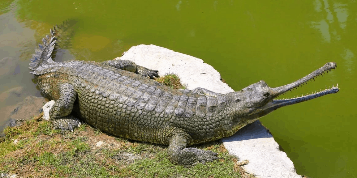 Встретиться с хищником можно в Индии, но нежелательно – у животного весьма острые зубы – благодаря им крокодил ловко охотится и поедает добытое. Масса тела животного достигает 210 кг. У него плохо развиты ноги, поэтому крокодил испытывает трудности при передвижениях по земле.