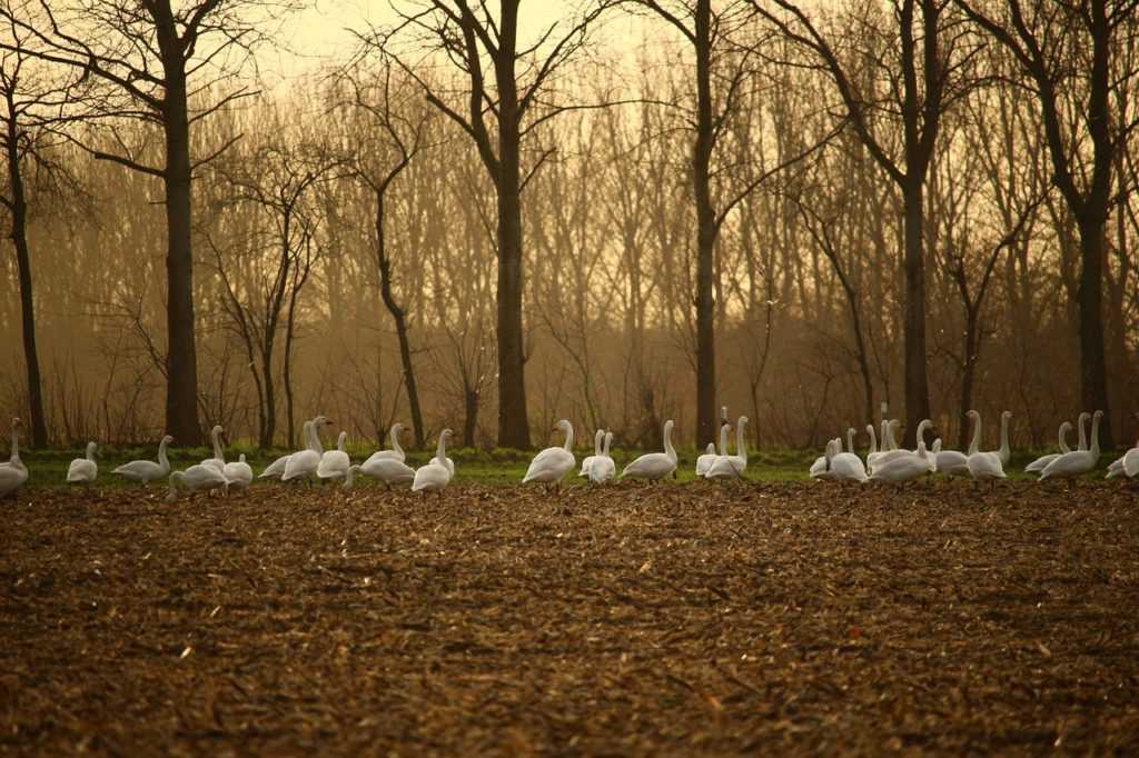 Лебеди улетают осенью на юг, создавая неизгладимое в памяти впечатление. Они пролетают над территорией, с какими-то печальными криками, как бы прощаясь с этим местом до следующей весны.