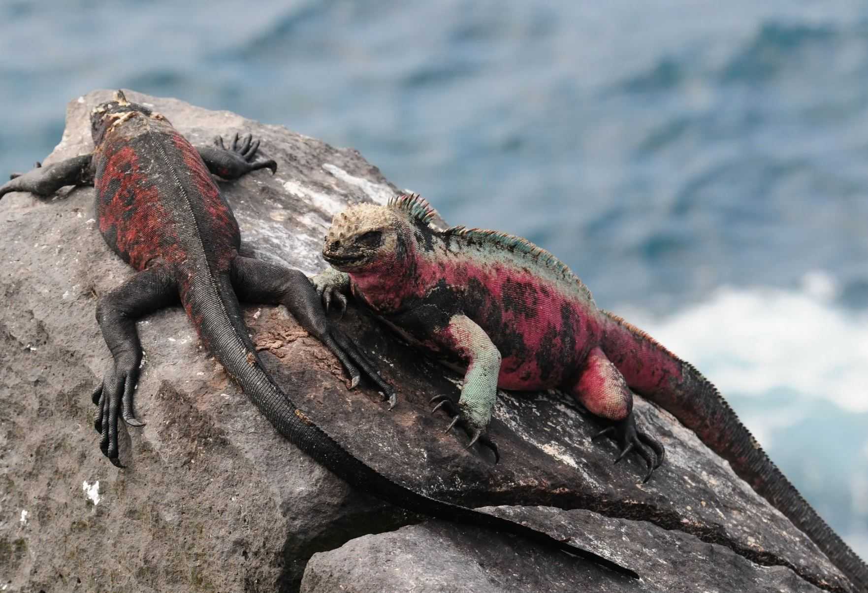 Сегодня численность морских игуан, которые живут на острове Северный Сеймур достигла пяти тысяч особей. Некоторую часть этих животных переселили на остров Сантьяго.