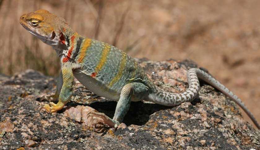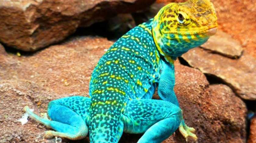 - ошейниковая игуана имеет самую яркую окраску среди всех разновидностей, именно это привлекает покупателей при выборе животного.