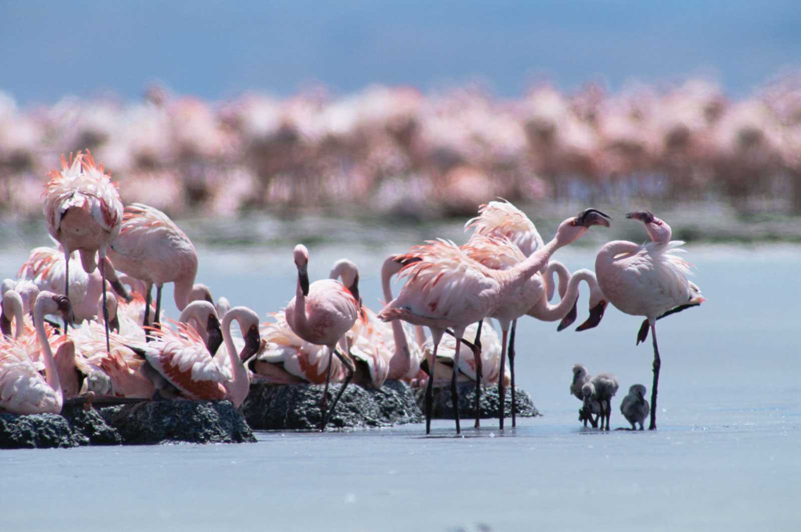 На территориях африканских соленых озер присутствуют самые многочисленные колонии наиболее миниатюрных представителей фламинго — малых фламинго.