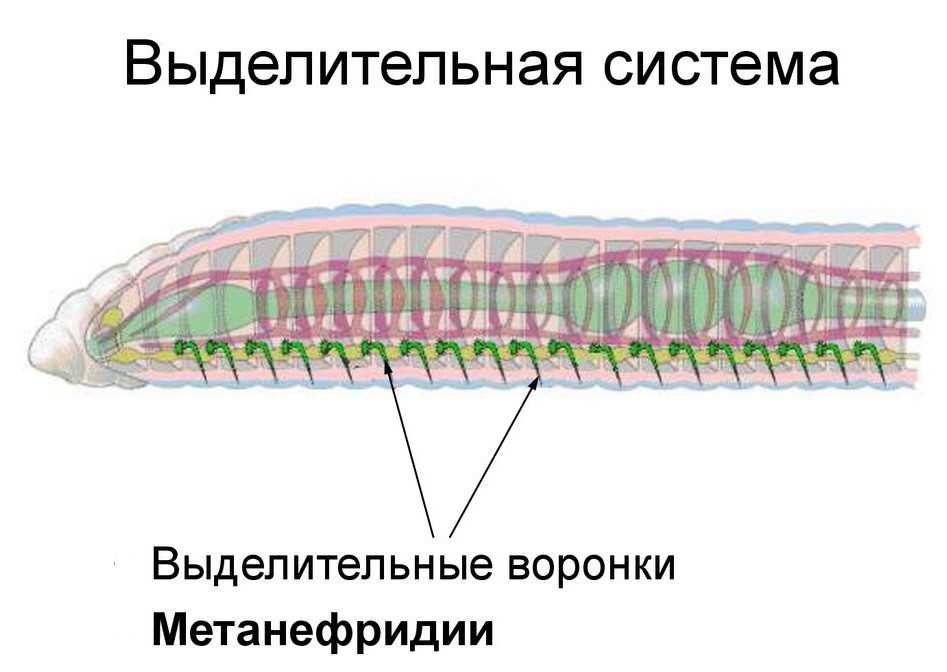 Органы выделения имеют вид тоненьких петлеобразно изогнутых трубочек, которые одним концом открываются в полость тела, а другим наружу. Новые, более простые воронкообразные органы выделения — метанефридии выводят вредные вещества во внешнюю среду по мере их накопления.