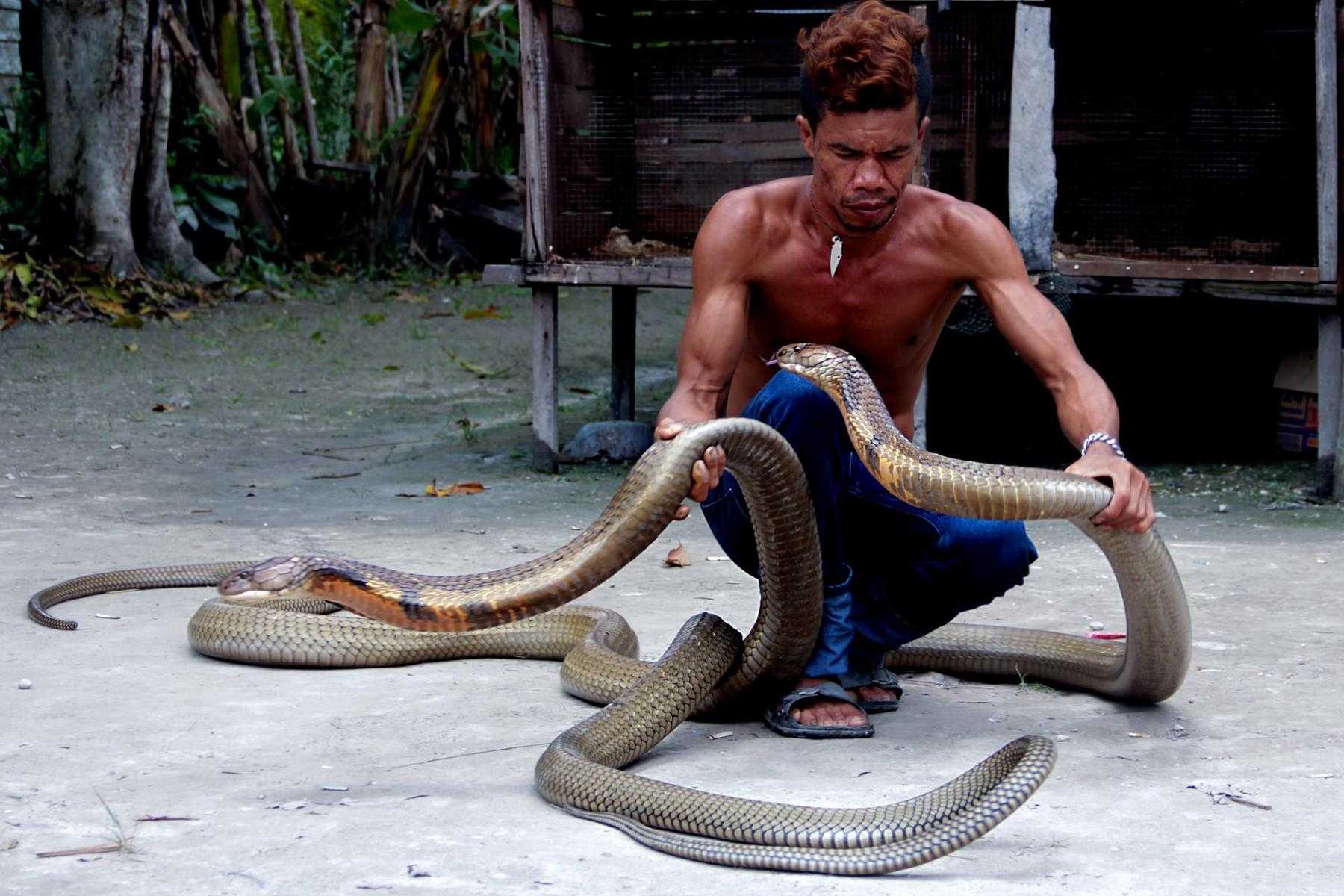 Многие слышали или лично наблюдали танцы очковой змеи под дудочку заклинателя змей. Это зрелище невероятно опасно, если не принять некоторые меры. Поэтому многие заклинатели перед выступлением удаляют у змей зубы или зашивают им рот.В действительности в мире существует несколько человек, которые могут работать с ядовитыми змеями. Эти люди хорошо знают повадки змей, на какие движения они могут реагировать агрессивно.