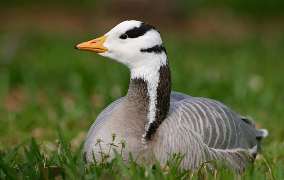 Судя по названию породы видно, что горный гусь обитает в горах. Его родиной является Южная и Центральная Азия. Такая порода популярна в Кыргызстане, Казахстане, Монголии и Китае. В зимнее время стаи гусей перелетают в северную часть Индии к низинам, в Бутан, Бангладеш и Пакистан. По-английски порода называется «bar-headed». Если перевести на русский язык – с полосками на голове. Данное название породы пошло от необычной окраски головы. На белом оперении находятся две черные полосы. Из них одна идет по затылку между глазами, другая ниже нее, возле шеи.