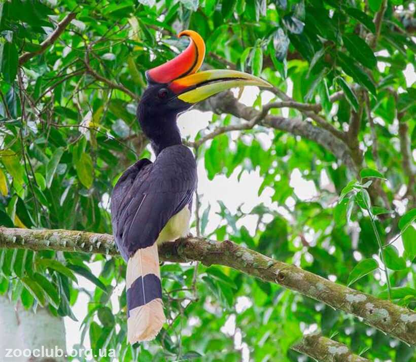 Calao — по-испански носорог. Другое имя: индийская птица носорог. В этот род входит 5 видов внушительных птиц. Они обитают в индийском субконтиненте и в Юго-восточной Азии. Клюв, голова, часть шеи ярко окрашены. В остальном преобладают темные цвета. Хвостовое оперенье — белое.