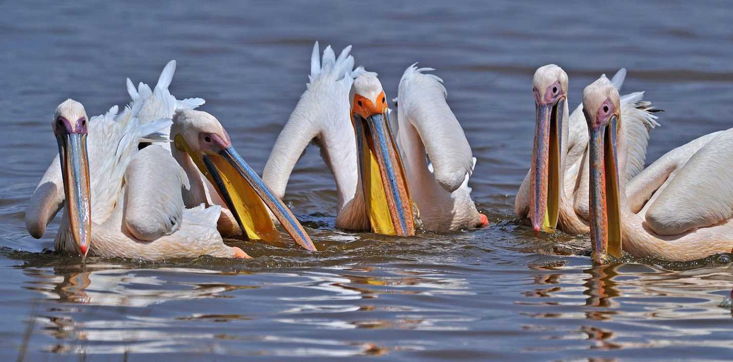 Купание у пеликанов происходит следующим образом. Они наклоняют голову и тело к воде, начиная взмахивать крыльями. Птица открывает клюв или расправляет крылья, когда у нее увеличивается температура тела для реализации функции терморегуляции.