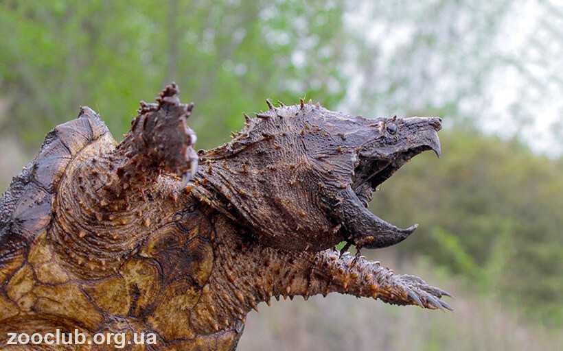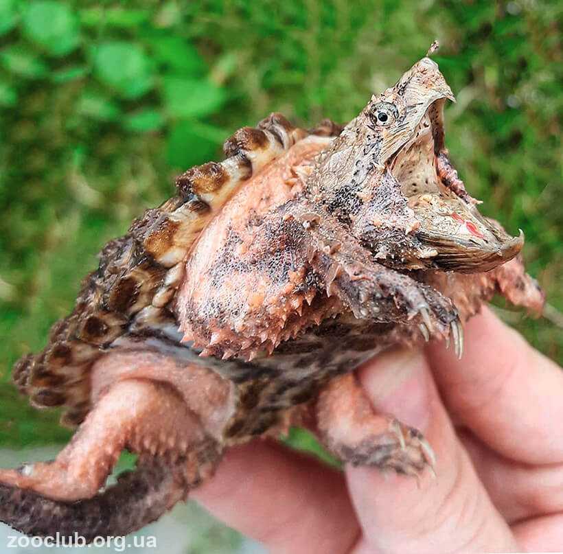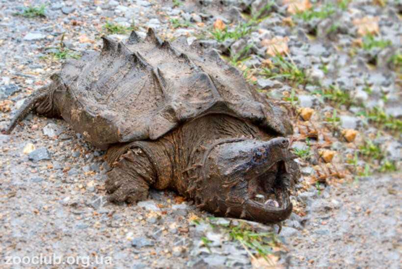 Собравшись перекусить, она неподвижно залегает на дно водоема, зачастую до половины зарывшись в ил и широко раскрыв пасть. Аллигаторовая черепаха терпеливо ждет появления какой-нибудь любопытной рыбки. На кончике языка у нее имеется подвижный червеобразный отросток.