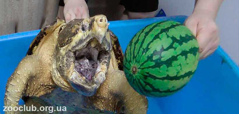 Грифовая черепаха – активная дневная хищница. Питается она рыбой, земноводными, беспозвоночными и падалью. При удобном случае не откажется от змей и даже других черепах.