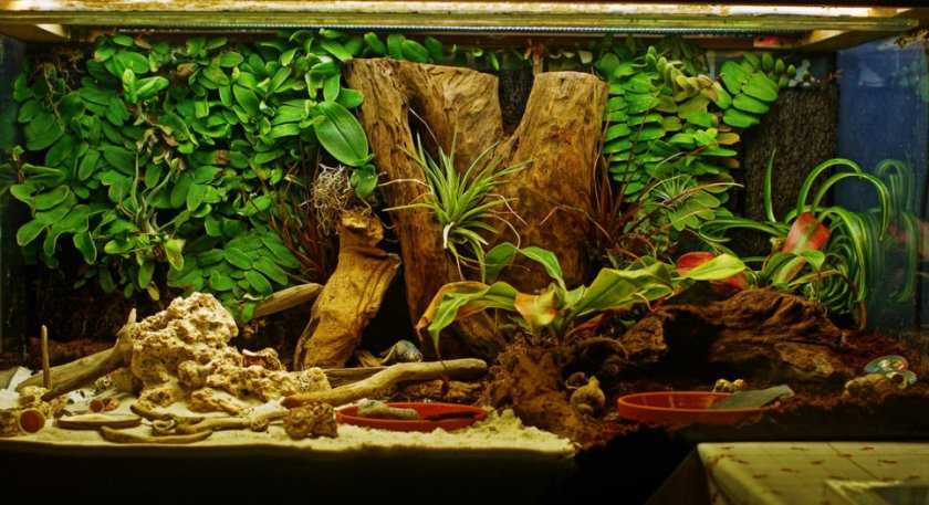 Важно продумать функциональность террариума так, чтобы он был не только красивым, но и удобным для животного. В качестве растений, которые будут украшать террариум и насыщать его кислородом, можно использовать: