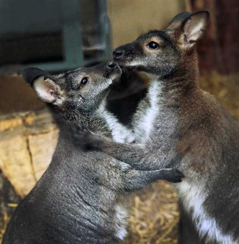 У кенгуру отсутствует сезонный период размножения, они спариваются в течение всего года. Для самцов характерны брачные битвы, победитель оплодотворяет самку, и уже через 30-40 суток на свет появляются детеныши – всегда не больше двух, длина тела новорожденного кенгуренка 2-3 см.