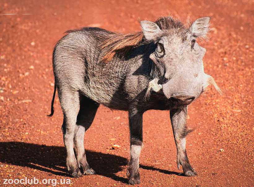 Впервые увидев бородавочника, обращаешь сразу же внимание на непропорционально крупную голову, которая к тому еще и приплюснутая. Большие, просто огромные белые клыки также приковывают к себе взгляд