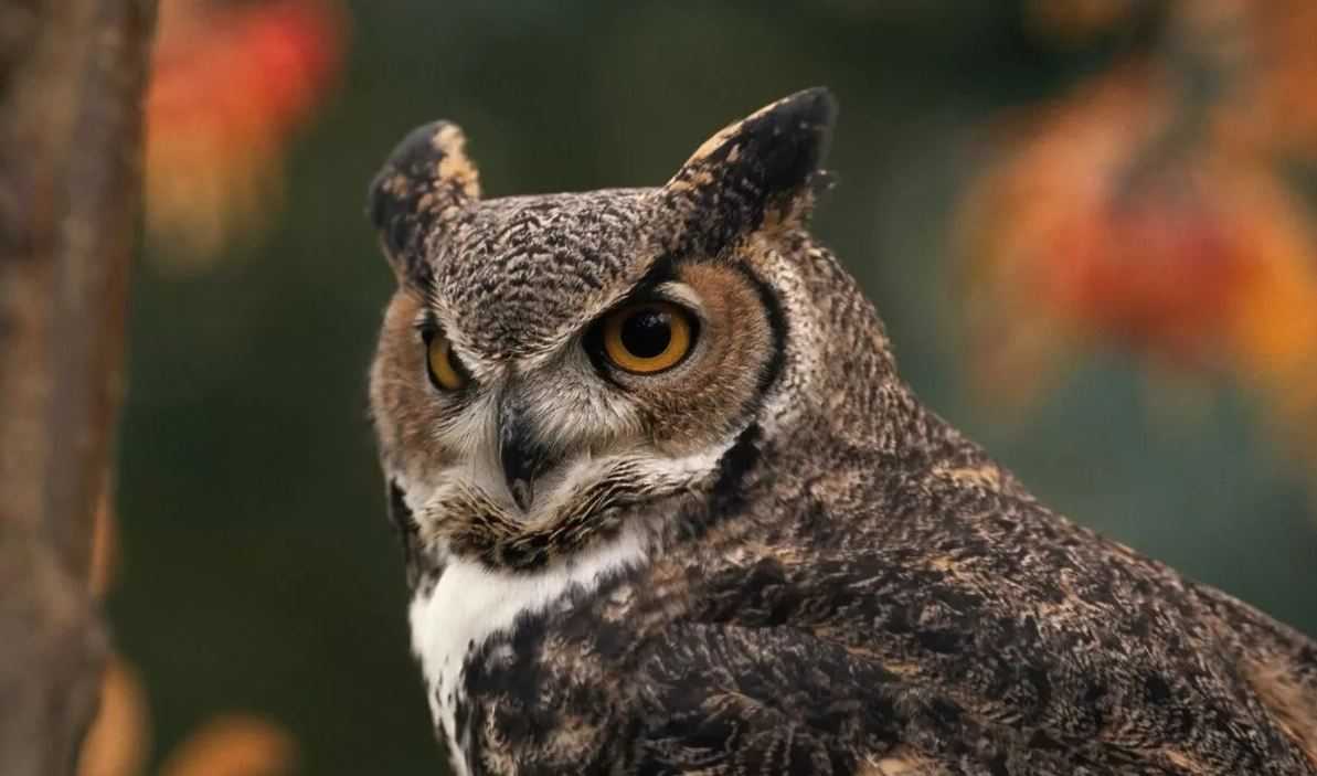 Окрас филина помогает ему маскироваться на фоне деревьев