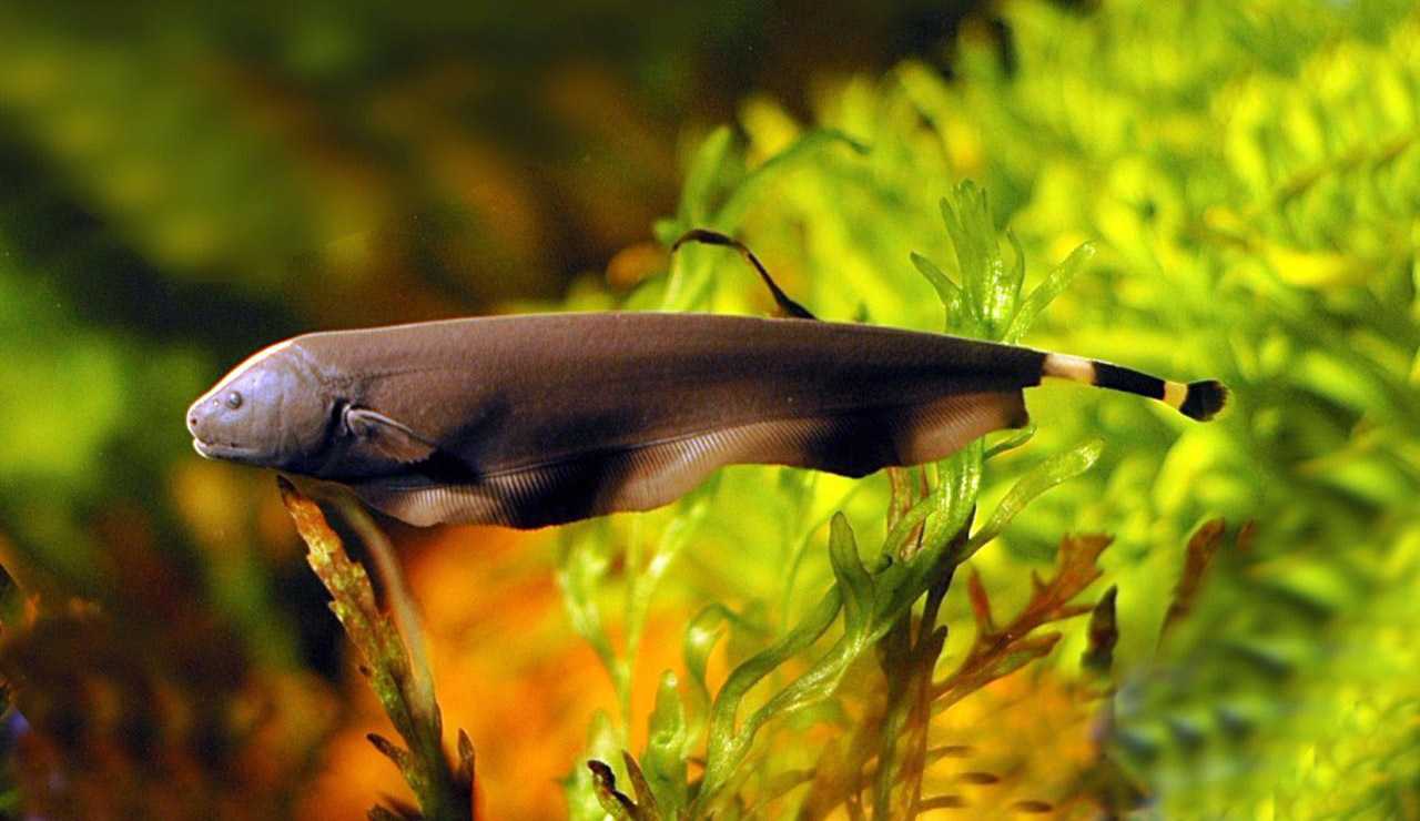 Чёрный призрак или черный нож — обитает в пресных водах бассейна Амазонки. Своё название получила за причудливый внешний вид: абсолютно черное тело с 2 белыми кольцами на хвосте и 1 белым пятном на голове. Передвигается черный призрак при помощи большого плавника через весь живот, который напоминает лезвие ножа. А коренные жители Южной Америки считают, что души усопших поселяются в этих рыб…