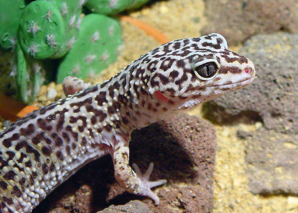 Выбрать питомца можно и среди пятнистых эублефаров. Это очень популярная в разведении ящерица, не требующая от вас больших вложений при покупке террариума. Она будет комфортно чувствовать себя в террариуме 45*45*30 см.