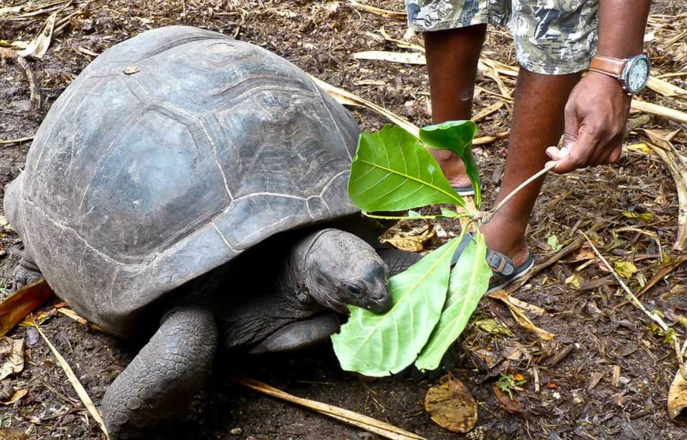 В природе сейшельские черепахи поедают карликовую островную растительность: