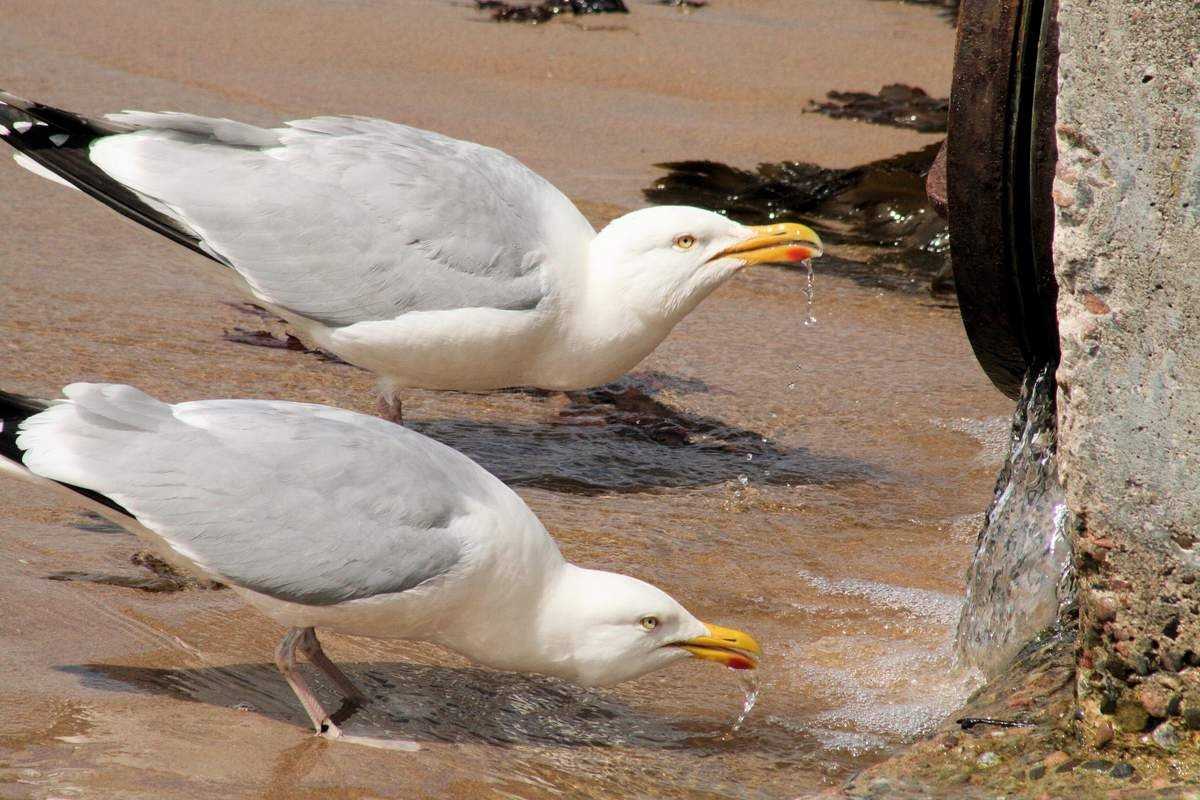 Чайки пьют воду.