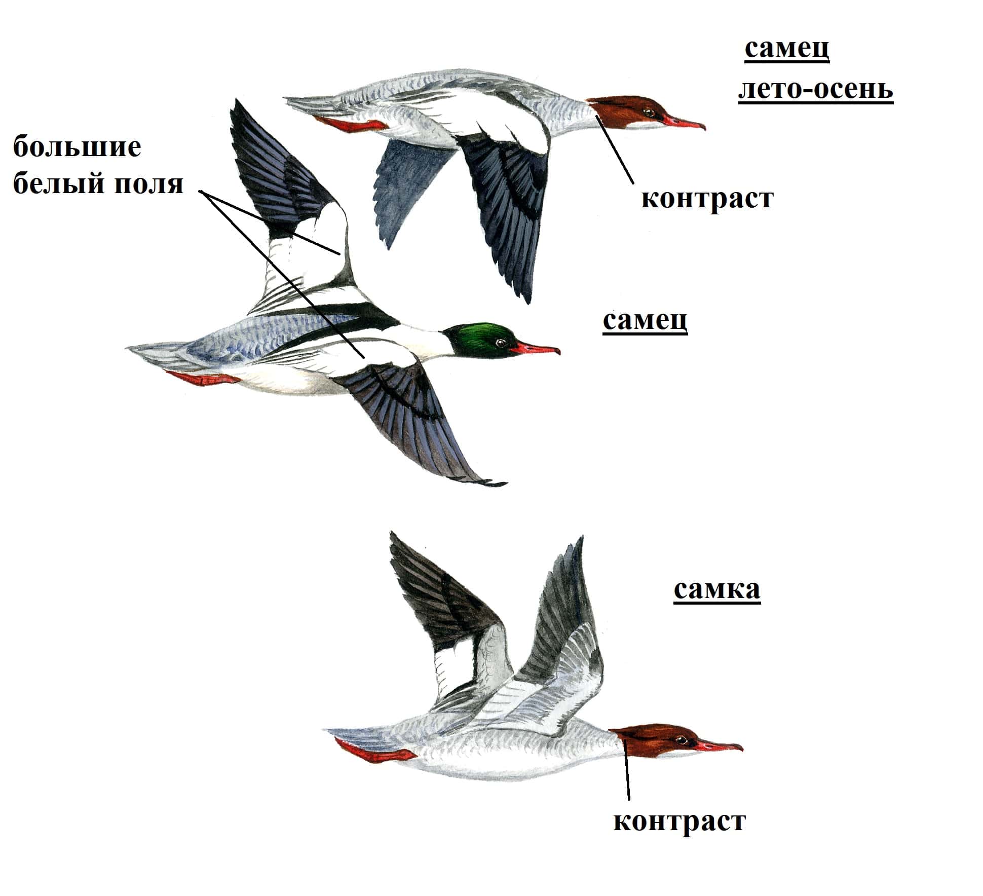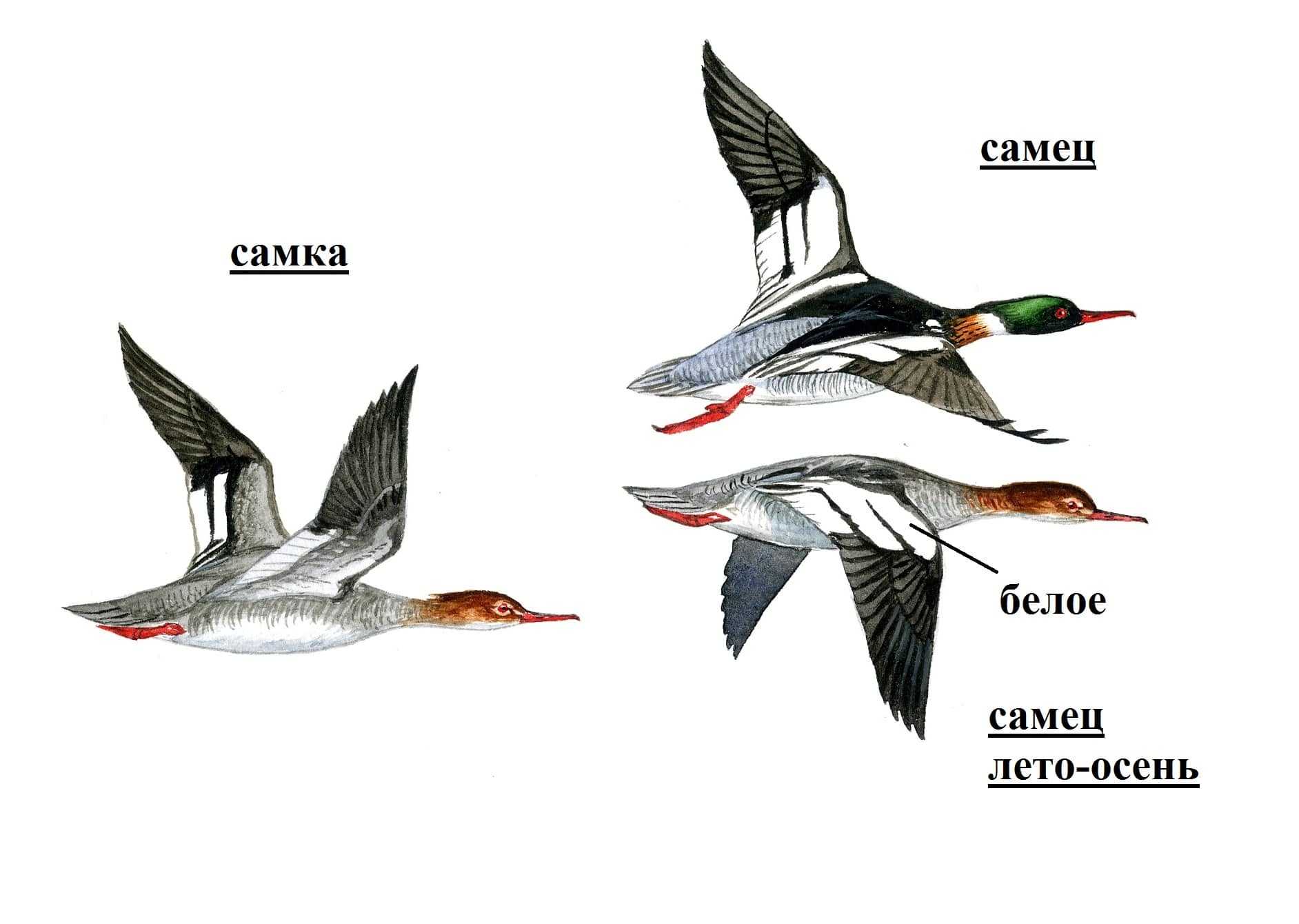 От большого крохаля отличается более тонким у основания клювом с небольшим крючком на вершине.