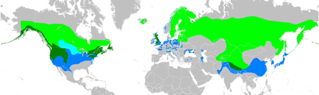 Гнездовой ареал охватывает большую часть лесной зоны севера Северной Америки, Европы, Сибири и Дальнего Востока.