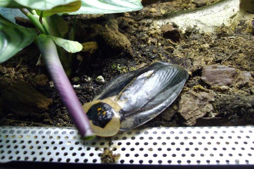 Для содержания в домашних условиях нужен контейнер-инсектарий от 5 л. для 3-4 особей. В зависимости от численности колонии берется больший объем. Вентиляция нужна небольшая, так как этот вид нуждается в высокой влажности воздуха (70-80%), поэтому отверстия лучше делать небольшие, иглой или тонкой спицей. Так и влажность сохранится, и личинки не смогут выбраться наружу (легко перемещаются по вертикальным поверхностям, в том числе и стеклу). Грунт должен быть влажным, но не мокрым, не менее 5 см. толщиной. Я использую смесь кокосового субстрата, торфа и дубового опада. Кстати, листья дуба – это любимая еда таракашек, долго в инсектарии не лежат, можно с осени заготовить и добавлять по мере надобности всю зиму. Любят всевозможные укрытия, коряги, но они не обязательны. Питание от других тараканов сильно не отличается: овощи, фрукты, хлопья злаков, гаммарус или дафния. Хорошо когда дома есть дети; то, что не доели они – съедят тараканы))) Температура содержания 24-30 градусов, при температурах ниже нормы становятся вялыми и неактивными, плохо едят.