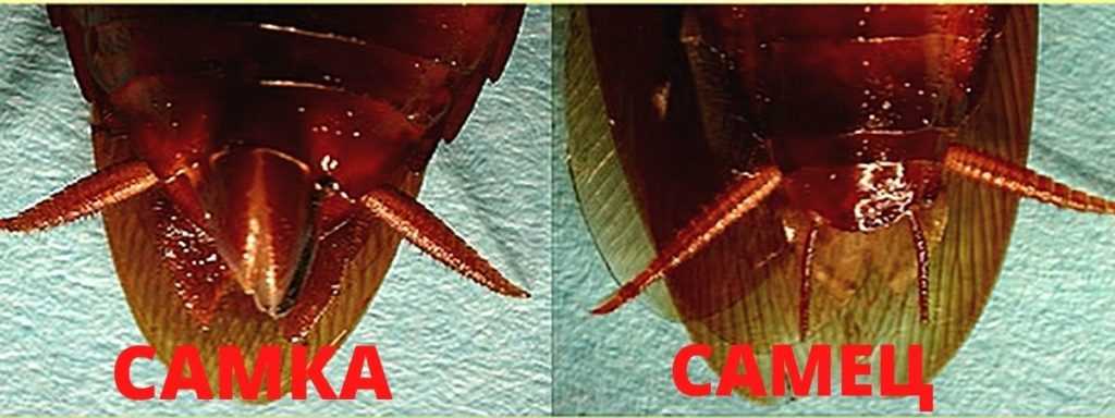 Первое на что нужно обратить внимание, так это на размер — у самок оно обычно намного шире, нежели у самцов, второй признаком является то, что у «женщины»-таракана последние два сегмента брюшка окрашены в угольно-черный цвет, а вот у «мужчин» лишь один