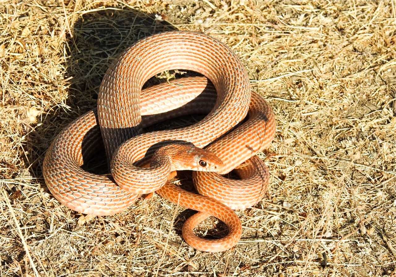 Dolichophis schmidti — краснобрюхий полоз, признан отдельным видом недавно, раньше его считали подвидом каспийского сородича. Главное отличие – в окрасе не только красноватого брюха, но и спины такого оттенка, глаз.