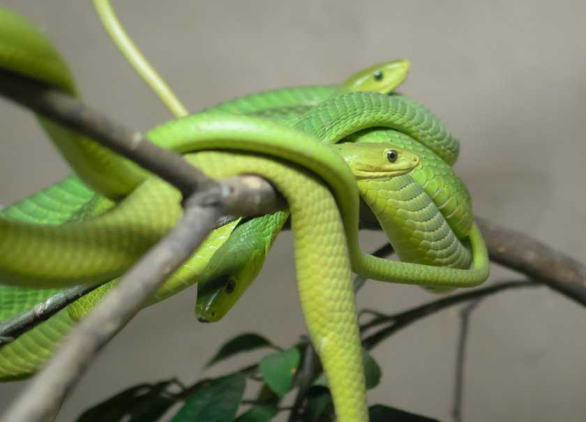 Поэтому совсем не случайно зеленую мамбу прозвали «зеленым дьяволом». Но, не смотря на все ее отрицательные особенности, находятся любители, которые содержат в своей коллекции ядовитую рептилию, любуясь красивой окраской кожи.