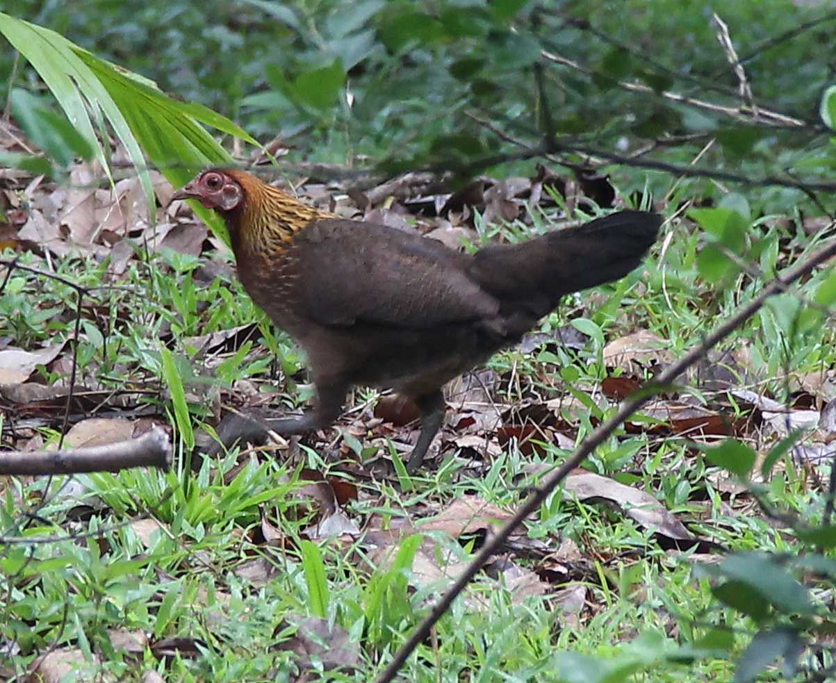 В Индонезии обитают серая порода диких кур. Оперение у этих птиц пёстрое. На воротниковой зоне перо полосатое, чёрно-белое. На груди серое с металлическим, голубоватым глянцем. На спине голубые косы. Хвост короткий, тёмный.